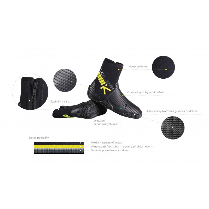– Neoprén o hrúbke 6mm zaisťuje tepelný komfort a mäkkosť topánok.