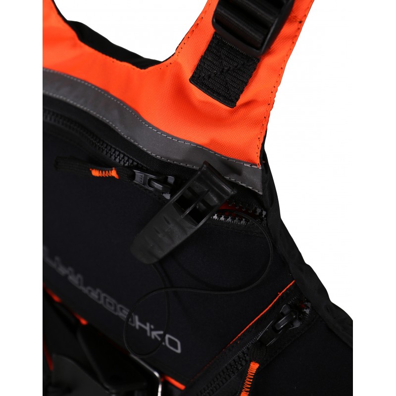 – Vesta je vybavená bezpečnostným popruhom, reflexnými prvkami a píšťalou.